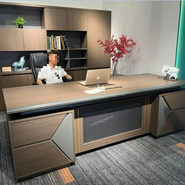 Bàn làm việc 2m4 là biểu tượng của sự hiện đại và sang trọng trong không gian làm việc của người lãnh đạo. Với mặt bàn được làm từ ván gỗ sợi nhập khẩu, được phủ melamin chống trầy cao cấp theo tiêu chuẩn châu Âu, sản phẩm này không chỉ đảm bảo độ bền mà còn thể hiện sự tinh tế và chuyên nghiệp.