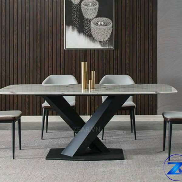 Chất liệu: Mặt bàn đá ceramic nhập khẩu cao cấp, chân bàn sơn tĩnh điện cao cấp