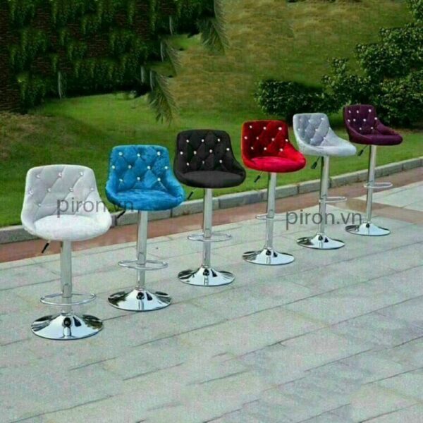 Chất liệu: Ghế mặt nhung, cao 45cm chân mâm trụ có thể nâng hạ