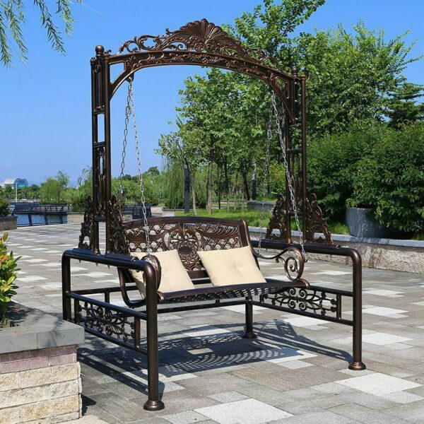 Chất liệu: Ghế xích đu ngoài trời, Nhôm đúc nhập khẩu cao cấp chống hoen gỉ. Có thể Để nắng mưa ngoài trời.