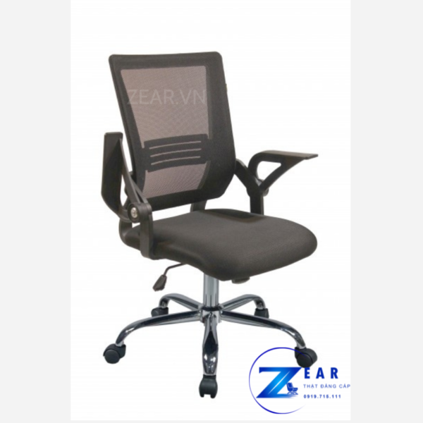 Chất liệu: lưng lưới, nệm ngồi bọc vải hoặc simili, tay nhựa điều chỉnh lên xuống, chân xoay inox 201.