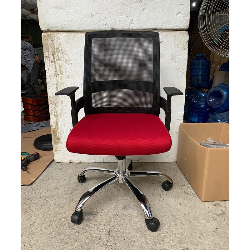 Chất liệu: Lưng lưới, đệm định hình dày 5 phân. Màu sắc theo yêu cầu khách hàng. Khung chân xoay hoặc chân cố định